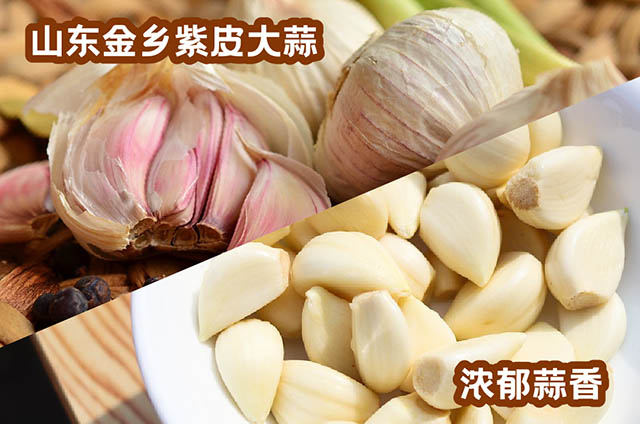 The WEI DA MEI JIN YIN garlic sauce is the compound seasoning launched by Shinho early this year. It is made mainly from the purple-skinned garlics from Jinxiang County, Shandong Province (the garlics are famous for the thin skin, large clove, tender texture and moderate spiciness), laying a solid foundation for the product’s deep garlic fragrance.
