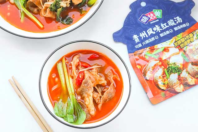 The WEI DA MEI Guizhou-style red sour soup launched by Shinho the latest made its debut in this activity. The stewed beef in sour soup made with it attracted extensive attention of the visitors thanks to its sour, spicy and appetizing special flavor.