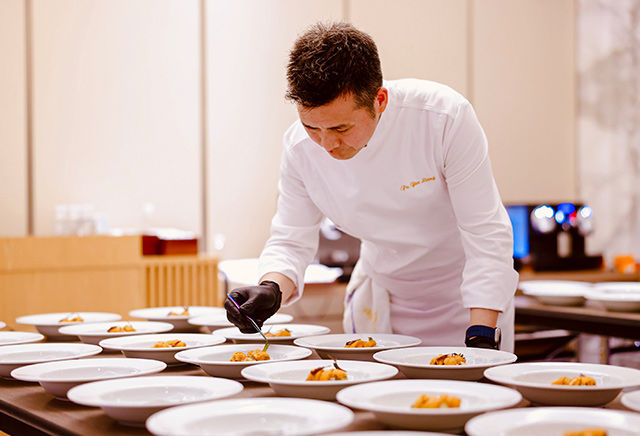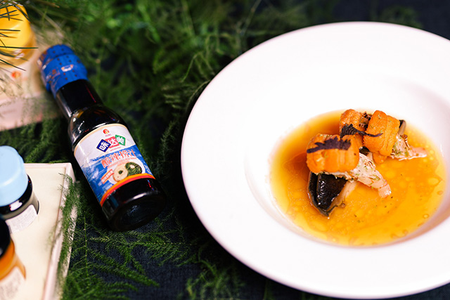 On the scene of Michelin Guide issue celebration, Shinho joined hands with Mr. Fu Yueliang, the chief cook of 2024 Hangzhou Michelin one-star restaurant Ru Yuan, to interpret Hangzhou Cuisine--"smoked black gold abalones with aroma of distillers grains, matched with sea urchin, hot green pepper and spot shrimp".