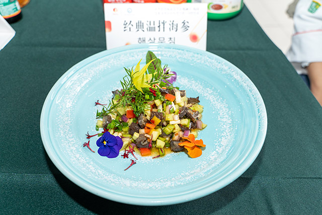 Bao Shusheng, a teacher of Yantai Vocational College of Culture and Tourism and the director of Yantai Lucai Research Institute, used WEI DA MEI Imperial Oyster Sauce and WEI DA MEI Spicy Soybean Paste jointly developed by Korean well-known chef to present a classical Shandong cuisine--"Shinho Sauced High-pressure Sea Cucumber".