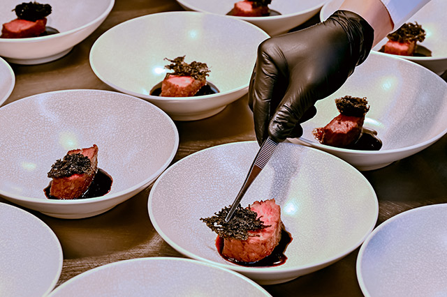 The black beef is cut into small pieces and marinated for 12 hours to ensure it can be fully seasoned. Then it is stewed at 60℃ for 12 hours to decompose the connective tissue. Finally the tender and juicy beef can be served.