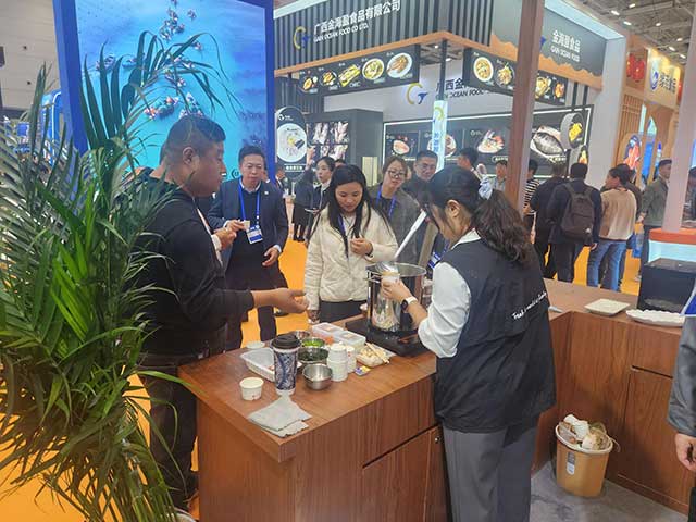 After picking up one Shinho product, he said continuously, “This sauce solves the problem ——It can be used directly and does not cover the natural freshness of seafood. The high popularity of your products also contributes to our better business performance.” Many practitioners in the industry on show agreed on his words and consulted the product details and tailoring services.